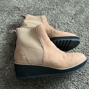 Eileen Fisher Chelsea wedge boot in wheat. Sz 9 used in good condition.