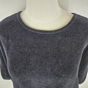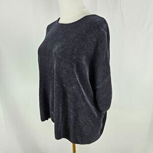 Eileen Fisher Chenille Sweater Size XL Short Sleeve Black Quiet Luxury
