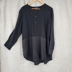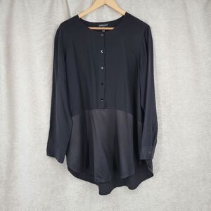 Eileen Fisher Chic Silk Black Button-Up Blouse Long Sleeves Women's Size XL