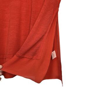 Eileen Fisher Chiffon Silk Tunic Blouse Size S Orange Slits Lagenlook Boho