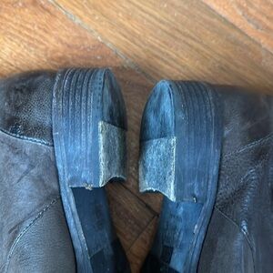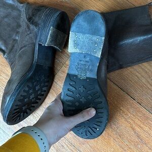 Gold zipper up the outside of the boot.  Soft flexible upper. Soles still in very good condition- all blemishes in photos. Only actual issue is the leather on the inside peeling away from the shaft, however this could be repaired with leather glue or just left as is if it doesn’t bother you!