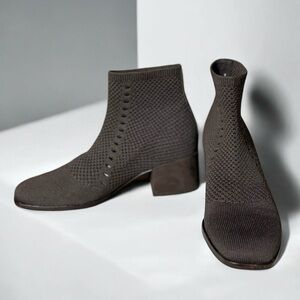 🌻Eileen Fisher Chocolate Brown Paron Stretch Crepe Knit Booties Size 5.5