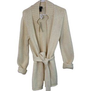 Eileen Fisher Chunky Cotton Rope Open Front Cardigan With Belt L NWT 7825