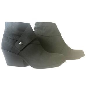 Eileen Fisher Chunky Heel Ankle Boots Women's Size 7.5 All Leather Gray Zip Up Comfort Casual