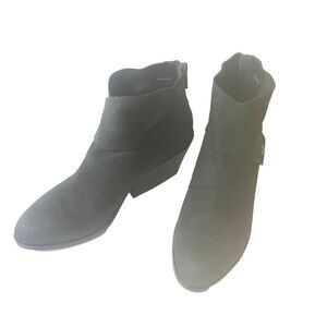 Eileen Fisher Chunky Heel Ankle Boots Women's 7.5 All Leather Gray Zip Up Casual