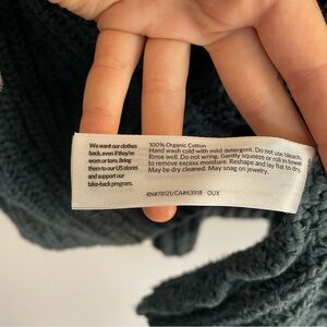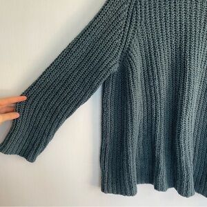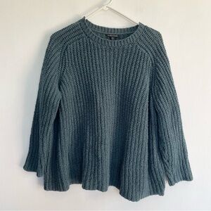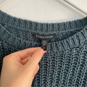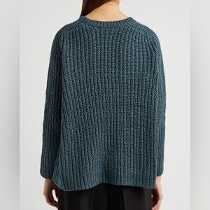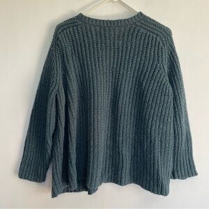 Eileen Fisher Chunky Knit Cotton Sweater Blue Ribbed Crew Neck Raglan Sleeve
