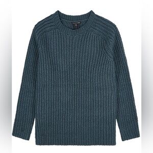Eileen Fisher Chunky Knit Cotton Sweater Blue Ribbed Crew Neck Raglan Sleeve S P