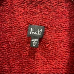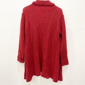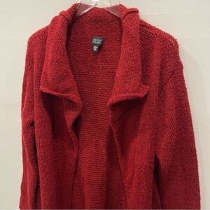 Eileen Fisher Chunky Knit Open Front Cardigan Sweater Coat Wool Knit Medium Red