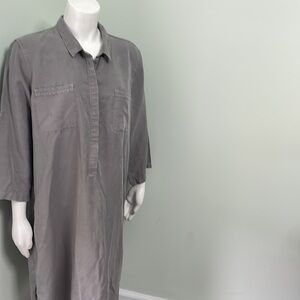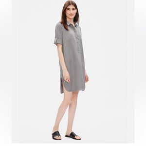 Eileen Fisher Classic Collar Dress Tencel Linen Shirtdress