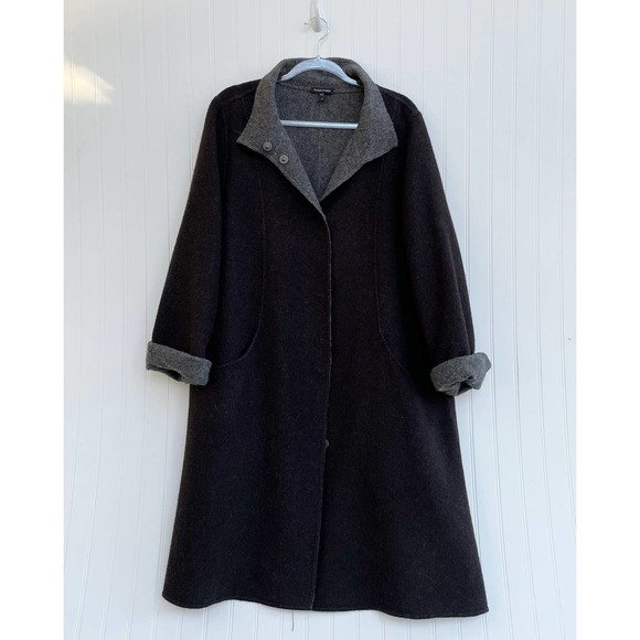 Eileen Fisher Coat Alpaca Wool Coat Brown Chocolate Brown