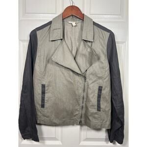 Eileen Fisher Coated Organic Linen Asymmetrical Zip Two Tone Jacket Medium
