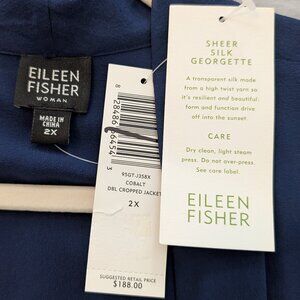 Eileen Fisher Cobalt Blue silk georgette sheer crop jacket