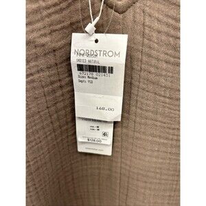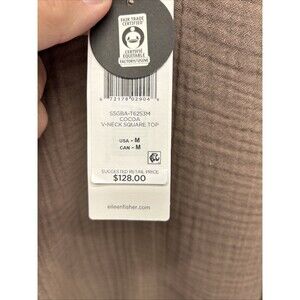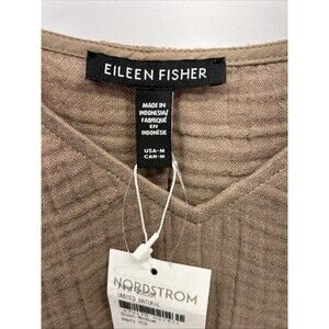 Eileen Fisher Cocoa Brown Organic Cotton Lofty Gauze Un Dyed V Neck Square Top SZ M NEW w Tags