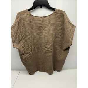 Eileen Fisher Cocoa Brown Organic Cotton Lofty Gauze V Neck Square Top SZ M NEW