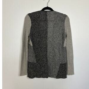 Eileen Fisher Color Block Knit Open Long Sleeve Wool Linen Cardigan Small Petite
