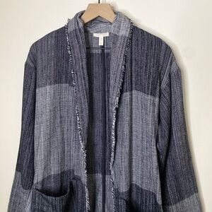 Eileen Fisher Color Block Shawl Collar Jacket Black Gray