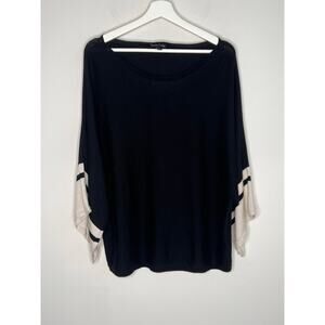 Eileen Fisher Colorblock Bateau Neck Batwing Kimono Sleeve Sweater Top Black XL