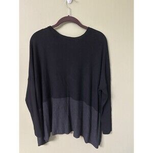 Eileen Fisher Colorblock Sweater Rolled Neck L Gray Black Lagenlook Asymmetrical
