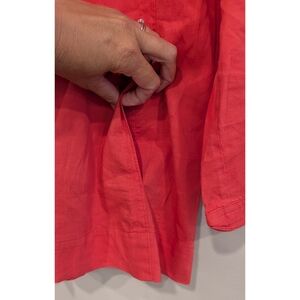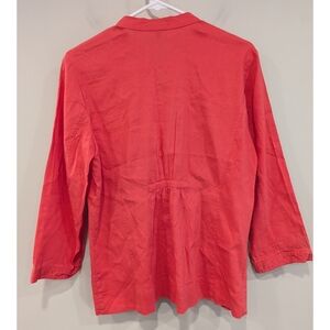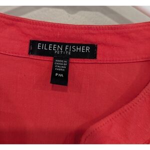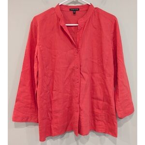 Excellent pre-owned condition. Eileen Fisher coral button down tunic top. Linen blend. Size petite medium