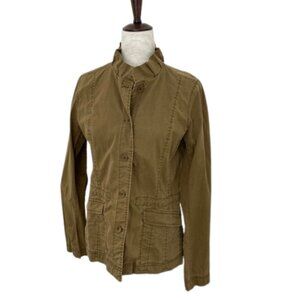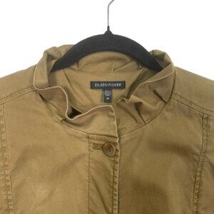 Eileen Fisher Cotton Bland Ruffle Collar Utility Jacket Size M Olive Green