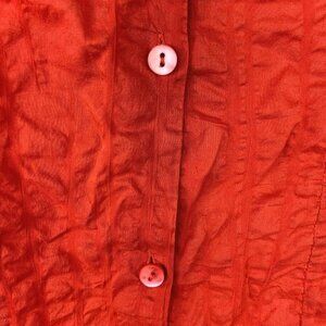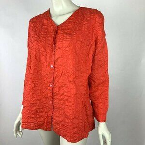 Eileen Fisher Cotton Blouse Top Button-Down Long Sleeve Texture Tunic Red Women