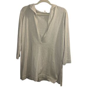 ✨Eileen Fisher Cotton & Cashmere Hooded Cream Sz Small Sweater✨