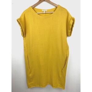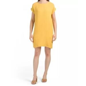 Eileen Fisher Cotton Gauze Shift Dress Marigold Yellow Size Petite Small