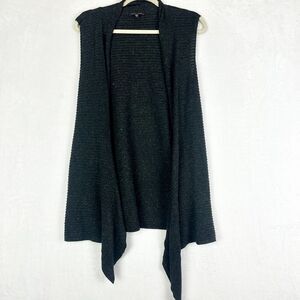Eileen Fisher Cotton Linen Blend Vest Size Large Open Front Heathered Charcoal