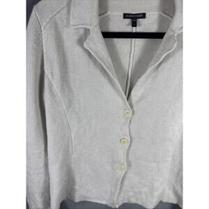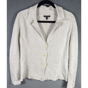 Eileen Fisher Cotton Metallic Bone Knit Notch Collar Zip Sleeve Jacket Sz Small