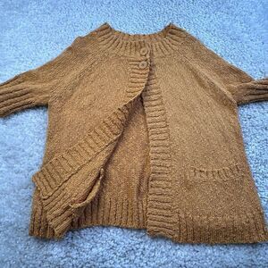 Eileen Fisher Cotton Mustard Yellow Cardigan Sweate Small Petite