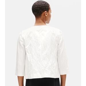 Eileen Fisher Cotton Satin Steel Short Jacket L White NWT Blazer Open Front