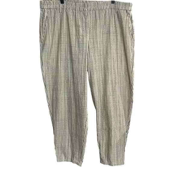 Eileen Fisher | 100% Organic Cotton Slouchy Ticking Stripe Tapered Ankle Pants | Natural, Tan, Beige | Size Womens XL