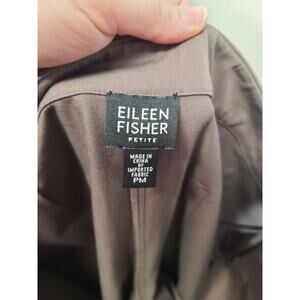 Description: Eileen Fisher Brown Cotton Spandex Pants, size M Petite, excellent condition. Features button fly, back pockets, perfect for casual or versatile looks. Smoke-free home, fast shipping, bundle to save!