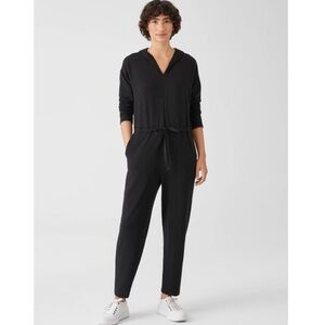 Eileen Fisher Cozy Brushed Terry Hooded Jumpsuit Black