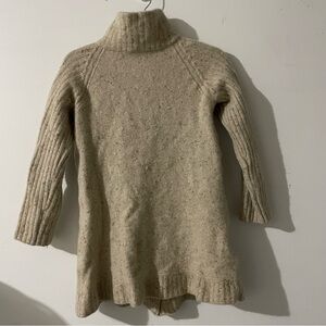 Cozy cream cardigan with button front. Features ribbed sleeves and pockets. High collar design.