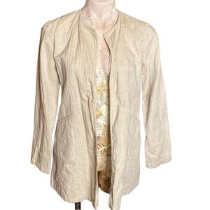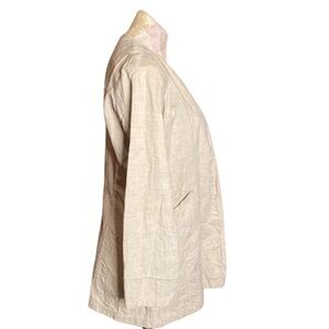 Eileen Fisher Cream Tan crinkled Linen Cotton blend long Jacket cardigan Sz XS