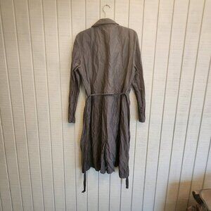 Eileen Fisher Crinkle Gray Belted Topper Coat Dress