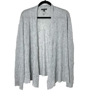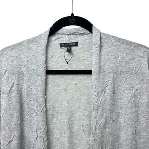 Eileen Fisher Crinkle Knit Lightweight Open Front Cardigan Sweater Gray Sz L