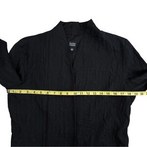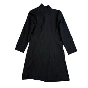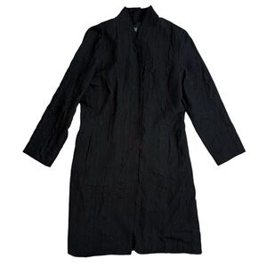Eileen Fisher Crinkled Sheer 100% Silk Classic Collar Jacket Size S Long Black lightweight