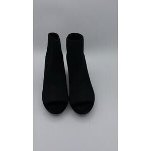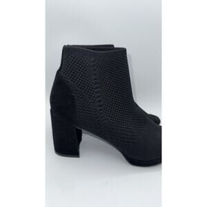 Eileen Fisher Croft Booties Womens 8 Black Knit Peep Toe Suede Block Heel