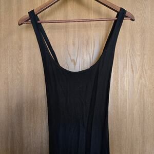 Eileen Fisher cross back strap stretchy rayon dress in the color black, size medium. In very good prelove condition. No flaws seen. Made in the USA.