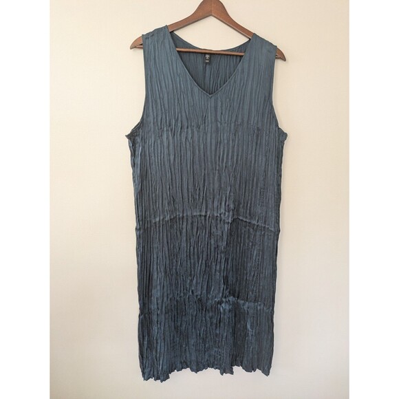Eileen Fisher Crushed Cupro Dress XL Alpine Green Lightweight Capsule NWOT