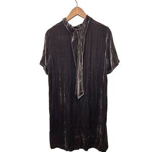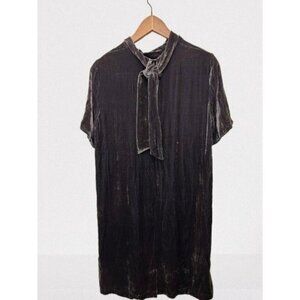Eileen Fisher Crushed Velvet Dress Tie Back Chocolate Brown Size Small