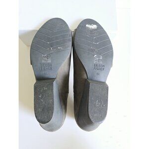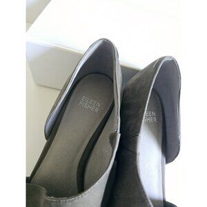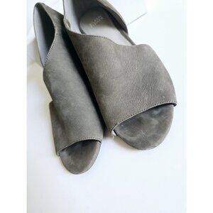 Eileen Fisher D'Orsay Peep Open Toe Gray Leather Wedge Heel Sandals Shoes 8.5