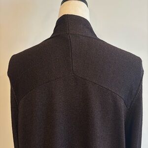 Eileen Fisher Dark Brown Open Front Knit Cardigan Large Preppy Quiet Luxury