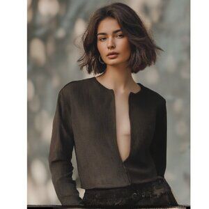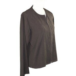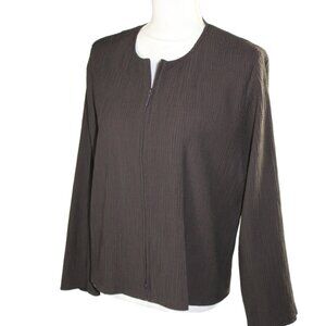 Eileen Fisher Dark Brown Pin Tuck Textured Front Zip Scoop Neck Jacket, …