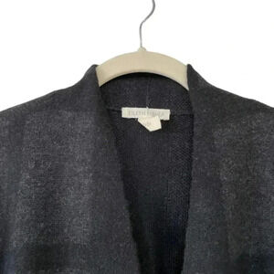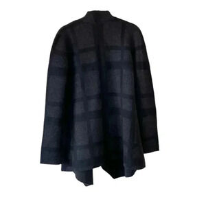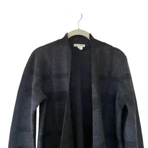 Eileen Fisher Dark Gray Knit Cardigan Sweater Size Small Open Front Windowpane