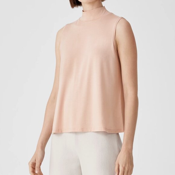 Eileen Fisher Dark Powder Basic Length Fine Jersey Mock Neck Tank