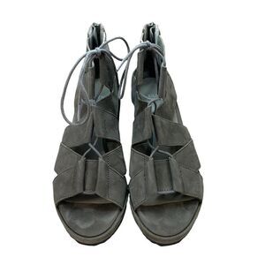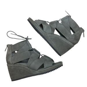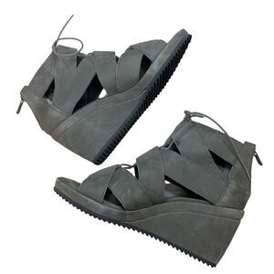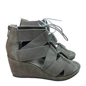 Eileen Fisher Dibs Gray Nubuck Leather Wedge Lace Up Sandals 6.5