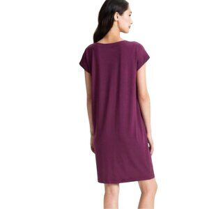 Eileen Fisher Drape Front Cap Sleeve Burgundy Lagonlook Shift Dress Size XL